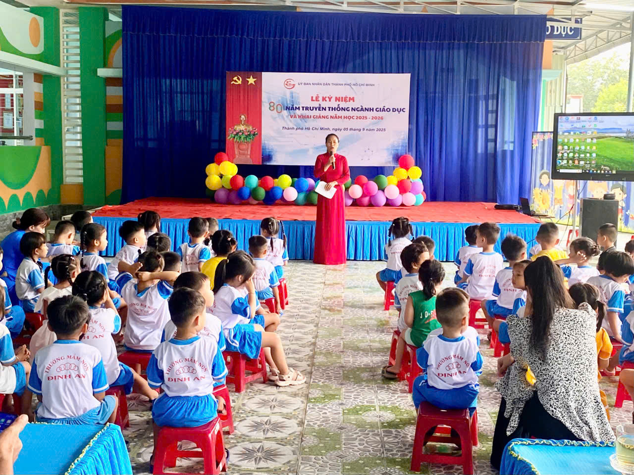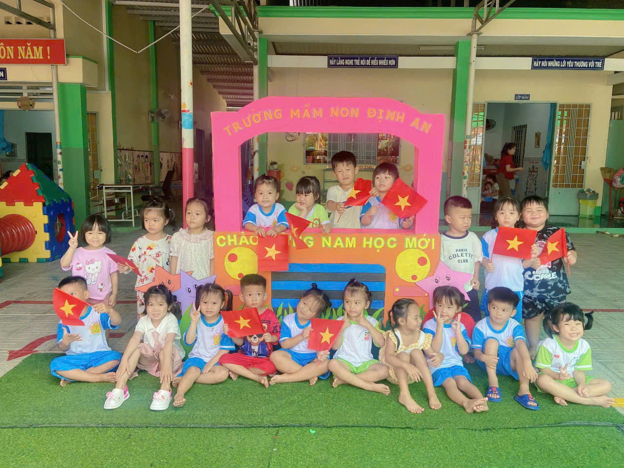 Nhân dịp năm học mới 2025 - 2026,  buổi lễ khai giảng của trường Mầm non Định An diễn ra vui vẻ, đầm ấm, để lại nhiều ấn tượng tốt đẹp cho các con; chúc cho trường sẽ ngày càng hoàn thiện mọi mặt để thực sự là nơi “ươm mầm tương lai”; chúc các CBQL, GV, NV, NLĐ luôn mạnh khỏe, tràn đầy năng lượng để truyền lửa, truyền đam mê cho các con và chúc các con một năm học mới vui vẻ, chăm ngoan, học giỏi.